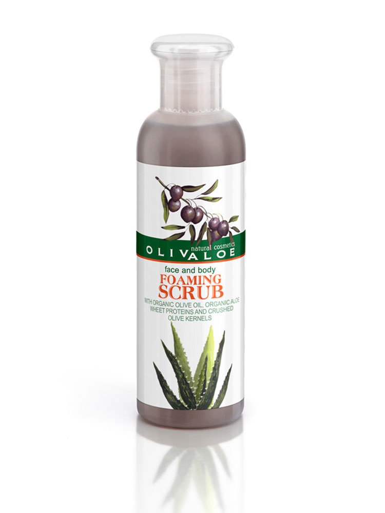 To Foaming Scrub της OlivAloe είναι ένα premium προϊόν που εξάγεται με τεράστια επιτυχία στις αγορές της Αγγλίας και της Γερμανίας. Απόλυτα αποτελεσματικό και μοναδικό (ως προς τη σύνθεση του), το Foaming Scrub OlivAloe έχει ολοκληρωμένη δράση η οποία καλύπτει 4 στάδια: Καθαρισμός, Ενυδάτωση, Απομάκρυνση νεκρών κυτάρων και Φυσική Αναγέννηση νέων υγειών κυτάρων στην επιδερμίδα. Η διαδικασία αυτή κάνει το πρόσωπο να φαίνεται πιο ξεκούραστο και νεανικό, καθώς τα νέα κύταρα έχουν μεγάλη ελαστικότητα και χαρίζουν λάμψη και φωτεινότητα στην επιδερμίδα. Το Foaming Scrub έχει τη μορφή τζελ, κάνει υπέροχο αφρό και είναι απαραίτητο για άτονες και ταλαιπωρημένες επιδερμίδες (ταιριάζει σε όλους τους τύπους επιδερμίδας).