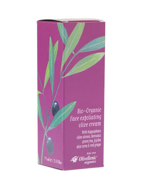 Η βιολογική κρέμα απολέπισης της Olivellenic βελτιώνει την υφή του δέρματος κατά την θεραπεία του. Πωλείται σε συσκευασία 75ml.
