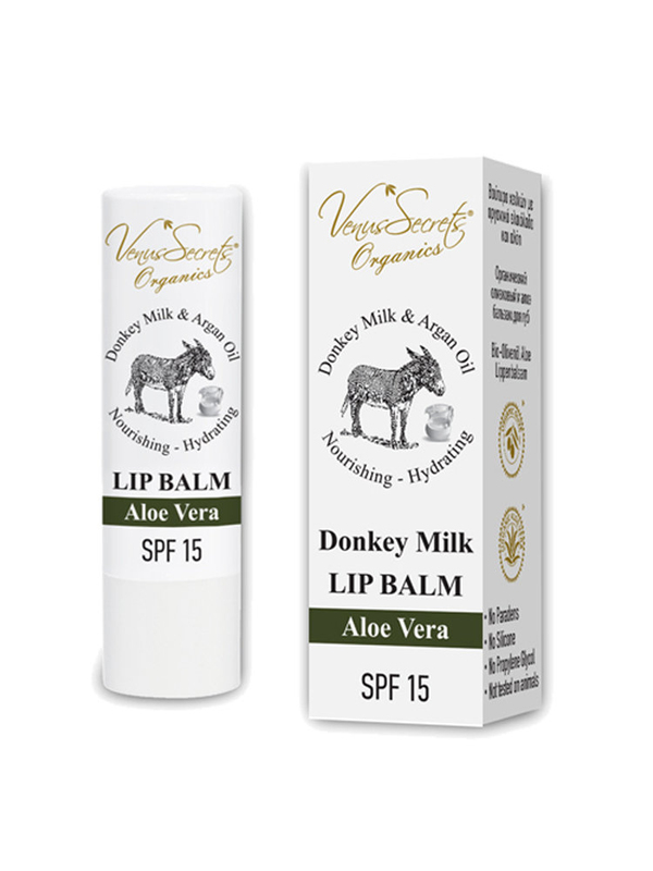 Ο συνδυασμός του ελαιολάδου με το γάλα γαϊδάρας παρέχει στην επιδερμίδα των χειλιών βαθιά θρέψη, ενυδάτωση και αντιγηραντική δράση, ενώ η Αλόη διατηρεί την υγρασία των χειλιών και αποτρέπει το σκάσιμό τους, καταπραΰνει τις φλεγμονές, βοηθά το δέρμα να διατηρεί την ελαστικότητα του, αναπλάθει, αναδομεί και συσφίγγει τους ιστούς, προσφέροντας φυσικό όγκο στα χείλη. Ένας αρμονικός και αποτελεσματικός συνδυασμός από συστατικά βιολογικής καλλιέργειας, τα οποία μας χαρίζουν υγιή και απαλά χείλη!