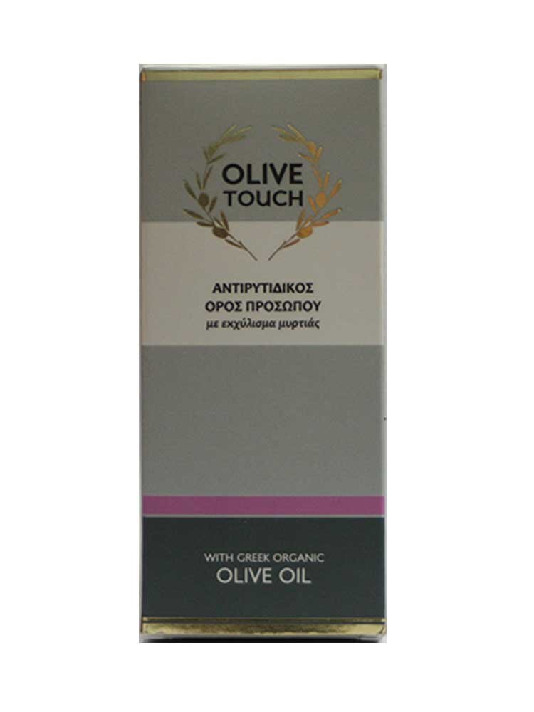 Το βιολογικό ελαιόλαδο πλούσια πηγή αντιοξειδωτικών θρέφει και ενυδατώνει το δέρμα σε βάθος, ενώ παράλληλα καταπολεμά τις λεπτές γραμμές και τις ρυτίδες, ενώ το εκχύλισμα μυρτιάς με την ισχυρή αντιρυτιδική του δράση επιμηκύνει τη διάρκεια ζωής των κυττάρων συμβάλλοντας σημαντικά στην καταπολέμηση της γήρανσης της επιδερμίδας.