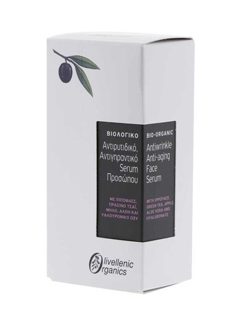 To ανανεωτικό, αντιγηραντικό και υπερενυδατικό Serum της Olivellenic organics περιέχει υψηλή συγκέντρωση από Ιπποφαές (πλούσιο σε Ω λιπαρά) , πράσινο τσάι, μήλο, υαλουρονικό οξυ και φυσική Aloe Vera περιέχει τα ιδανικά συστατικά για την καταπολέμηση των εξωτερικών παραγόντων καταστροφής της επιδερμίδας ενώ ταυτόχρονα ενυδατώνει, θρέφει και αναζωογονεί οποιονδήποτε τύπο δέρματος. Με το μοναδικό αυτό Serum επιτυγχάνεται διέγερση και ανανέωση των κυττάρων με αποτέλεσμα το Olivellenic Serum να χαρίζει στην επιδερμίδα ελαστικότητα και σφρίγος προλαμβάνοντας την αφυδάτωση και την χαλάρωση της. Η σύνθεση αυτή είναι το μαγικό άγγιγμα που απαλύνει τις λεπτές γραμμές και τις ρυτίδες έκφρασης χαρίζοντας στο πρόσωπο φρεσκάδα και νεανική όψη.