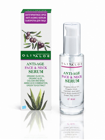 Ο Αντιγηραντικός ορός προσώπου και λαιμού της Olivealoe απότελεί ένα καινοτόμο προϊόν που προσφέρει βαθιά ενυδάτωση και μοναδική προστασία από τους παράγοντες που δρουν επιβαρυντικά για την υγεία της επιδερμίδας. Ο συμπυκνωμένος αυτός ορός περιέχει υαλουρονικό νάτριο, ειδικό βιοζακχαρίτη και βιολογική αλόη. Αυτά τα συστατικά προλαμβάνουν την απώλεια κολλαγόνου και υαλουρονικού οξέος και εξασφαλίζουν την απαραίτητη ενυδάτωση των κυττάρων, δίνοντας λαμπερή και υγιή όψη στην επιδερμίδα. Περιέχει ακόμα έναν μοναδικό συνδυασμό ασβεστίου και βασικών αμινοξέων που απόκαθιστά τις κύριες κυτταρικές λειτουργίες και βοηθά το δέρμα να επανακτήσει την πυκνότητα, την ελαστικότητα και τη σφριγηλότητά του. Το βιολογικό ελαιόλαδο και το εκχύλισμα από πράσινο τσάι, τα οποία απότελούν τη βάση του ορού, προστατεύουν την επιδερμίδα από το οξειδωτικό στρες και τις ελεύθερες ρίζες.