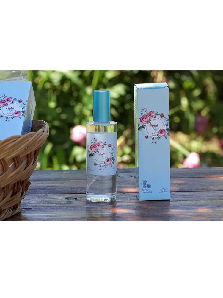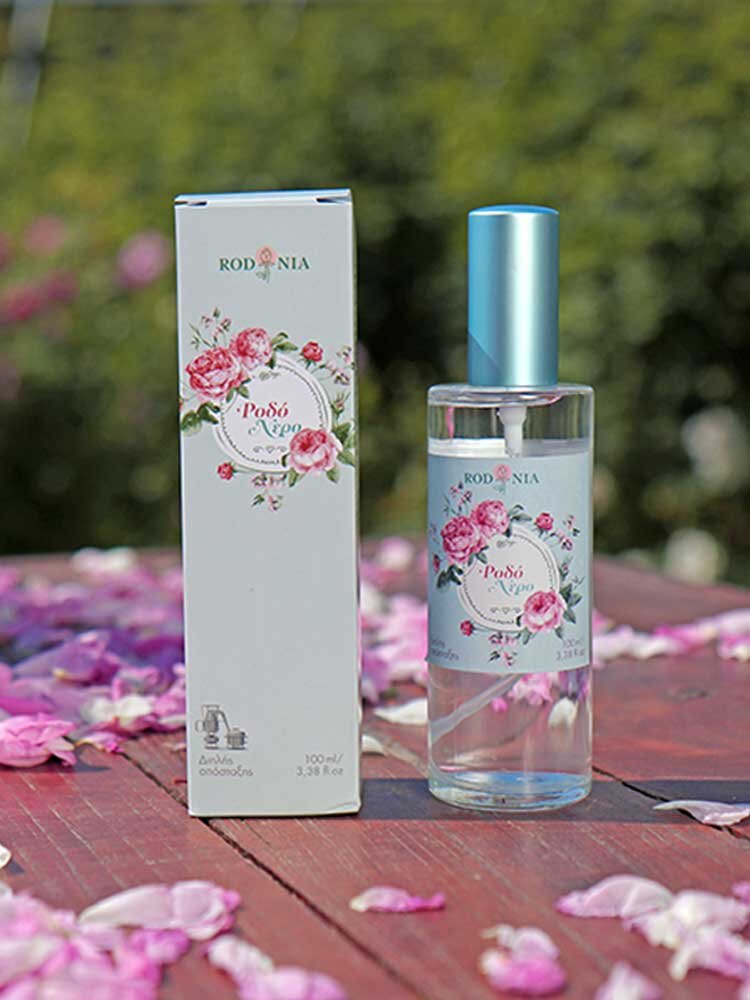 Ροδόνερο υψηλής ποιότητας με την υπογραφή της ελληνικής εταιρίας Rodonia. Ένα προϊόν διπλής απόσταξης νωπών ροδοπέταλων από τριανταφυλλιές της ποικιλίας Rosa damascene με την παραδοσιακή μέθοδο της υδροαπόσταξης.