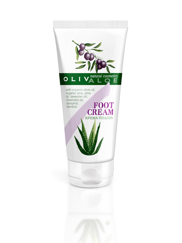 Το Foot Cream OlivAloe περιέχει οργανική Αλόη και οργανικό λάδι ελιάς. Τα δύο αυτά συστατικά μαλακώνουν και ενυδατώνουν την επιδερμίδα με απόλυτα φυσικό τρόπο. Παράλληλα περιποιούνται μικρές αμυχές και γδαρσίματα (λ.χ. "πετσάκια", ερεθισμούς από παπούτσια κτλ.) και μαλακώνουν πάρα πολύ τη σκληρή επιδερμίδα που σχηματίζεται συνήθως στη περιοχή της φτέρνας. Πέραν των συστατικών αυτών, το Foot Cream OlivAloe περιέχει αιθέρια έλαια Καμφοράς, Μέντας, Πεύκου και Λεβάντας. Η Καμφορά είναι ιδανική για την αντιμετώπιση διαστρεμάτων και κραμπών, το πεύκο είναι ιδιαίτερα αποτελεσματικό στο τομέα της μυικής χαλάρωσης, η Λεβάντα είναι ξακουστή για την αντιβακτηριακή της δράση και ιδιαίτερα χρήσιμη σε περιπτώσεις δερματοπαθειών και φλεγμονών ενώ η Μέντα δροσίζει και ανακουφίζει την επιδερμίδα βελτιώνοντας ταυτόχρονα (τοπικά) την κυκλοφορία του αίματος.