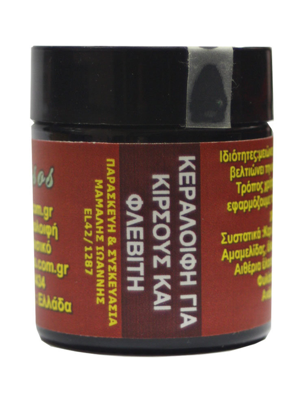Η κεραλοιφή κιρσών και φλεβίτη εκτός από το φυσικό κερί μέλισσας και το έξτρα παρθένο ελαιόλαδο περιέχει έλαια καλεντούλας, κισσού, αμαμελίδας, αλόη βέρα και αιθέρια έλαια χαμομηλιού, λεβάντας, κυπορισσιού και μέντας.