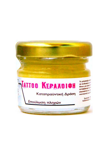 Οι πολύτιμες θεραπευτικές ιδιότητες των συστατικών της δημιουργούν έναν φυσικό φραγμό στην επιδερμίδα, ο οποίος προφυλάσσει το τατουάζ από μολύνσεις, ενώ ταυτόχρονα επιτρέπει στο δέρμα σας να αναπνέει. Παράλληλα μειώνει τον κνησμό και τον ερεθισμό διατηρώντας την περιοχή του tattoo άριστα ενυδατωμένη.