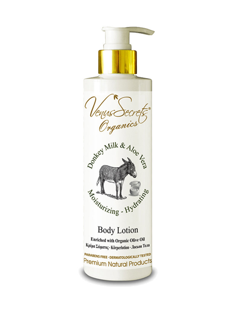 Τα ενεργά συστατικά του γάλακτος της γαϊδούρας σε συνδυασμό με το ελαιόλαδο εισχωρούν κατευθείαν μέσα στο δέρμα, επιτυγχάνοντας έντονη σύσφιξη, κυτταρική ανάπλαση και ενυδάτωση σε βάθος, ενώ το εκχύλισμα αλόης, προσδίδει στην επιδερμίδα μία αίσθηση ανακούφισης και φρεσκάδας.To γαλάκτωμα σώματος της Venus Secrets Organics θρέφει το δέρμα, χαρίζοντάς του υγιή και τονωμένη όψη, ενώ έχει πολύ θετικά αποτελέσματα και σε διάφορα δερματικά προβλήματα, όπως η ακμή, το έκζεμα και η ψωρίαση.
