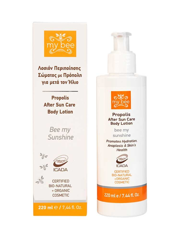 Η Πρόπολη, γνωστή για τις αντιφλεγμονώδεις και αντιμικροβιακές της ιδιότητες και την καταπραϋντική και επουλωτική της δράση η πρόπολη είναι ιδανική για την περιποίηση της επιδερμίδας μετά τον ήλιο. Το εκχύλισμα Αλόης προσφέρει βαθιά ενυδάτωση, θρέψη και καταπράυνση στην ερεθισμένη από τον ήλιο επιδερμίδα. Γνωστό για τις θεραπευτικές του ιδιότητες, το Αμυγδαλέλαιο, βοηθά στην αποκατάσταση του δέρματος και στη μείωση της φλεγμονής. Το Βερικοκέλαιο προσφέρει εντατική ενυδάτωση και ταυτόχρονα συμβάλλει στην αποκατάσταση της ελαστικότητας του δέρματος. Το Έλαιο Ηλίανθου με την αντιοξειδωτική του δράση προστατεύει το δέρμα από τυχόν βλάβες και προάγει τη διαδικασία επανόρθωσης του. Το Έλαιο Κέδρου ενυδατώνει και θρέφει σε βάθος την επιδερμίδα, βοηθώντας στην αποκατάσταση του φυσικού της φραγμού. Πλούσιο σε αντιοξειδωτικά, αντισηπτικές, αντιφλεγμονώδεις, και επουλωτικές ιδιότητες, το Κερί μέλισσας χαρίζει απαλότητα και ελαστικότητα στην επιδερμίδα.