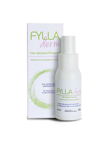 Η Προστατευτική Μεμβράνη Φραγής FYLLA-derm είναι ένα υψηλής θεραπευτικής αξίας φαρμακευτικό προϊόν, εμπλουτισμένο με υαλουρονικό οξύ και φυτικά εκχυλίσματα, το οποίο είναι κατάλληλο για έλκη κατάκλισης 1ου και 2ου σταδίου με χαμηλές εξιδρωματικές εκκρίσεις, ανοικτές πληγές, συρίγγια, εγκαύματα, μετεγχειρητικά τραύματα, ουλές τραυμάτων και εκδορές, ενώ είναι ιδανικό και ως βασικό εμπόδιο κατά του ερεθισμού που προκαλείται από τα σωματικά υγρά.
