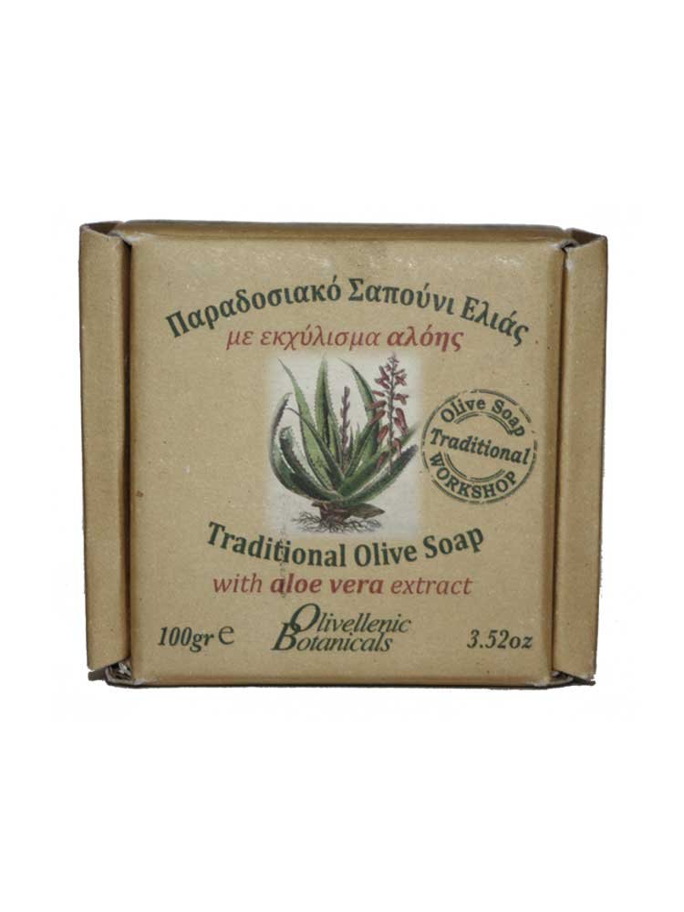 Το παραδοσιακό χειροποίητο σαπούνι ελαιολάδου με εκχύλισμα αλόης της εταιρίας Olivellenic Organics έχει σύνθεση πλούσια σε βιταμίνη Ε, εκχύλισμα ευκαλύπτου και φασκόμηλου, συστατικά τα οποία είναι γνωστά για την αντιμυκητιακή, αντισηπτική και επουλωτική τους δράση. Ο πλούσιος, κρεμώδης αφρός του ξεχωριστού αυτού προϊόντος καθαρίζει σε βάθος, χαρίζοντας λάμψη και υγεία, ενώ ξεπλένεται εύκολα χωρίς να αφήνει κατάλοιπα. Είναι ιδανικό για όλους τους τύπους δέρματος, ακόμη και για τα πλέον ευαίσθητα, ενώ έχει έντονα αναπλαστική δράση. Πωλείται σε χάρτινη, οικολογική και βιοδιασπώμενη συσκευασία των 100γρ.
