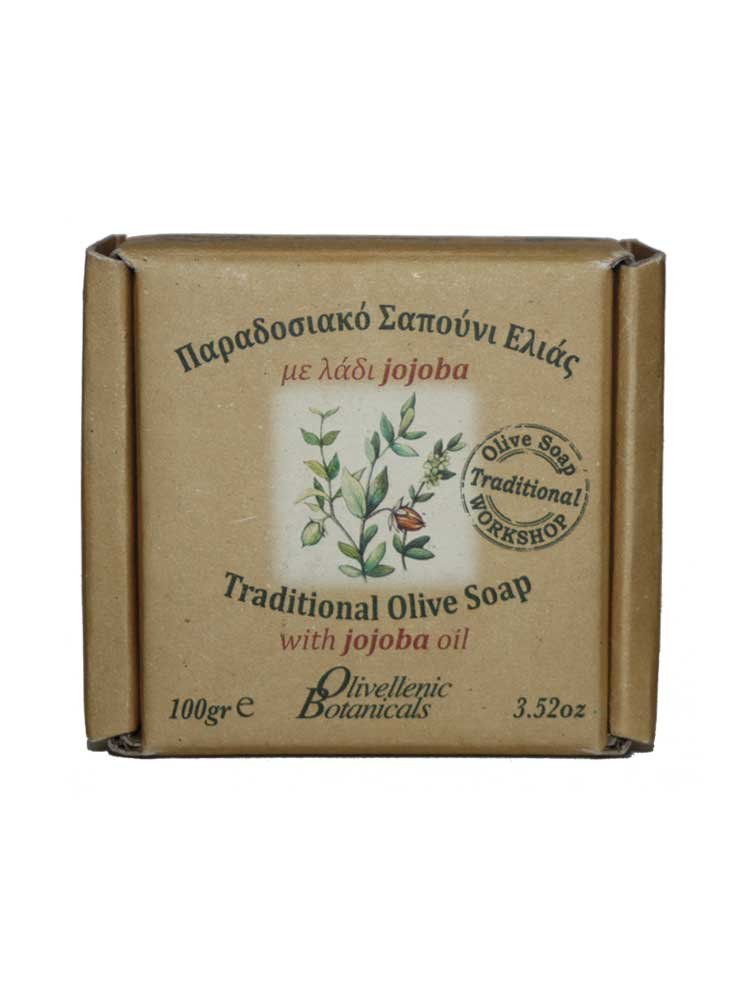 Το παραδοσιακό χειροποίητο σαπούνι ελαιολάδου με λάδι jojoba της εταιρίας Olivellenic Organics έχει σύνθεση πλούσια σε βιταμίνη Ε, εκχύλισμα ευκαλύπτου και φασκόμηλου, συστατικά τα οποία είναι γνωστά για την αντιμυκητιακή, αντισηπτική και επουλωτική τους δράση. Ο πλούσιος, κρεμώδης αφρός του ξεχωριστού αυτού προϊόντος καθαρίζει σε βάθος, χαρίζοντας λάμψη και υγεία, ενώ ξεπλένεται εύκολα χωρίς να αφήνει κατάλοιπα. Είναι ιδανικό για όλους τους τύπους δέρματος. Πωλείται σε χάρτινη, οικολογική και βιοδιασπώμενη συσκευασία των 100γρ.