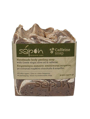 Χειροποίητο σαπούνι απολέπισης σώματος εμπλουτισμένο με ελληνικό παρθένο ελαιόλαδο και καφεΐνη από την εταιρία Sapon Skin Care. Ένα ξεχωριστό προιόν καθαριότητας και ήπιου peeling για το σώμα που θα τονώσει και θα ανανεώσει την επιδερμίδα σας, χαρίζοντάς της σύσφιξη, ελαστικότητα και μοναδική φρεσκάδα. Με πλούσιο άρωμα αμαρέττο.