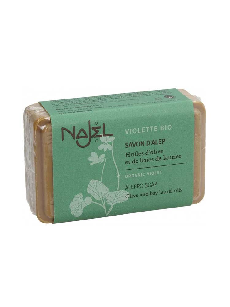 Κατασκευασμένο με μεράκι από εξαιρετικής ποιότητας πρώτες ύλες το σαπούνι Aleppo με εκχύλισμα Βιολέτας είναι ένα εξαιρετικό προϊόν καθημερινής περιποίησης, παρασκευασμένο από υψηλής ποιότητας πρώτες ύλες. Το εκχύλισμα Βιολέτας με την ισχυρή καταπραϋντική, αντισηπτική και επουλωτική του δράση, βελτιώνει την υφή και τον τόνο της επιδερμίδας, καθαρίζει από τους ρύπους, μειώνει το οίδημα και τις φλεγμονές, ενώ παράλληλα λειτουργώντας αντιοξειδωτικά, απαλύνει τις ελεύθερες ρίζες που προκαλούν γήρανση. Με υπέροχο λουλουδάτο άρωμα. Ιδανικό για την ερεθισμένη επιδερμίδα.