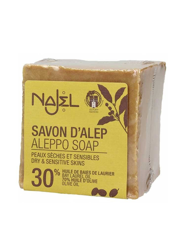 Αφεθείτε στην μοναδική εμπειρία χαλάρωσης που σάς προσφέρει το σαπούνι Χαλεπίου με περιεκτικότητα 30% δαφνέλαιο της εταιρείας Najel. Πρόκειται για ένα μοναδικό προϊόν περιποίησης φτιαγμένο με πάθος και μεράκι από εξαιρετικής ποιότητας πρώτες ύλες. Το σαπούνι αγκαλιάζει το σώμα, ενυδατώνει, θρέφει και καταπραΰνει την επιδερμίδα από ερεθισμούς, ενώ παράλληλα αναζοωγονεί και αναγεννά το δέρμα προσφέροντας λάμψη και φρεσκάδα. Τέλος το φρέσκο άρωμά του χαρίζει μια υπέροχη αίσθηση φρεσκάδας και τρυφερότητας. Ιδανικό για καθημερινή χρήση.