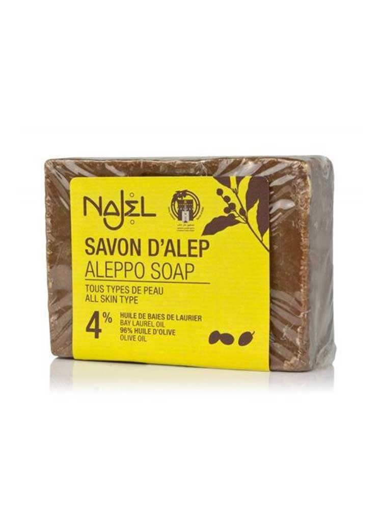 Είναι απαλό, ενυδατικό και φυσικό και μπορεί να χρησιμοποιηθεί από ενήλικες, παιδιά, βρέφη ακόμα και κατοικίδια. Κατάλληλο για το ευαίσθητό δέρμα και τις δερματικές αλλεργίες. Απολαύστε τις ευεργετικές ιδιότητες του σαπουνιού Χαλεπίου με περιεκτικότητα 4% σε δαφνέλαιο της εταιρείας Najel. Είναι ιδανικό για καθημερινή χρήση, καθώς χάρη στην περιεκτικότητά του σε δαφνέλαιο καθαρίζει, θρέφει και ενυδατώνει την επιδερμίδα αποτρέποντας τους ερεθισμούς και την ξηροδερμία, ενώ ταυτόχρονα συσφίγγει τους πόρους προσφέροντας ένα μοναδικό λαμπερό αποτέλεσμα. Τέλος το υπέροχο άρωμά του χαρίζει μια μοναδική αίσθηση φρεσκάδας και καθαριότητας που αγκαλιάζει το σώμα.