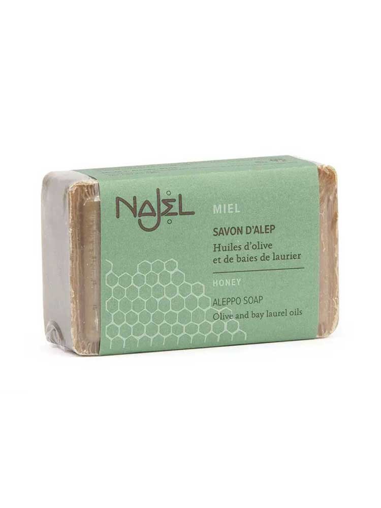 Το σαπούνι Najel Aleppo με μέλι συνδυάζει την προγονική τεχνογνωσία στην κατασκευή του σαπουνιού Aleppo με τις αναπλαστικές ιδιότητες και το λεπτό, γλυκό άρωμα του μελιού. Η ευεργετική του σύνθεση καθαρίζει και ταυτόχρονα θρέφει βαθιά το δέρμα, προσφέροντας μεταξένια απαλότητα στην επιδερμίδα, ενώ το ζεστό του άρωμα αγκαλιάζει τις αισθήσεις σας, χαρίζοντας ένα μοναδικό αίσθημα ευεξίας που διαρκεί όλη μέρα. Ιδανικό για το πρόσωπο, το σώμα και τα μαλλιά.