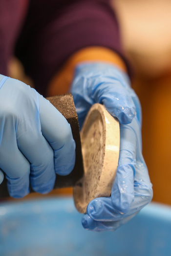 Η εξειδικευμένη βάση Terrazzo Art είναι ιδανική για τρίψιμο με λεπτόκοκκο γυαλόχαρτο. Παράλληλα παρέχει το πλεονέκτημα της μείωσης του χρόνου τριψίματος που απαιτείται για να αναδειχθεί η τεχνική.