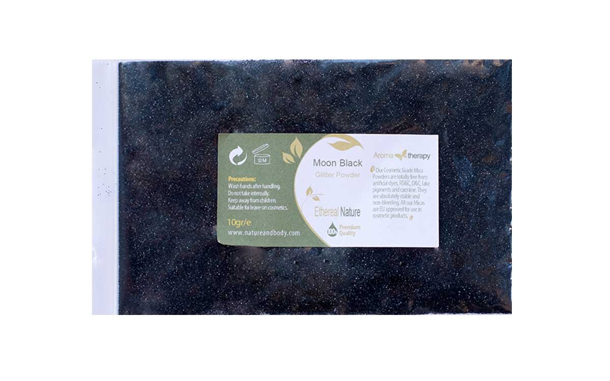 Το glitter powder Moon Black είναι ένα βαθύ, έντονο χρώμα με εφέ λάμψης μαύρου μαργαριταριού. Ένα must-have χρώμα για τους λάτρεις των σκούρων αποχρώσεων. Προσφέρει διαφάνεια και ανακλαστικότητα και χαρίζει ελαφριά προς μεσαία κάλυψη και υψηλή λάμψη (shimmer). Το χρώμα είναι κατάλληλο για όλα τα καλλυντικά (Face, Eyes, Nails, Lips). Το μέγεθος του κόκκου κυμαίνεται μεταξύ 10-60 microns.
