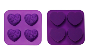 Η φόρμα“4 ανάγλυφες καρδιές με σχέδιο ζευγάρι” μπορεί να χρησιμοποιηθεί για να παρασκευάσετε σοκολάτες, τάρτες, μπισκότα, ατομικά γλυκά, αλλά και για σαπούνια και κεριά με "ξεχωριστό" ύφος.