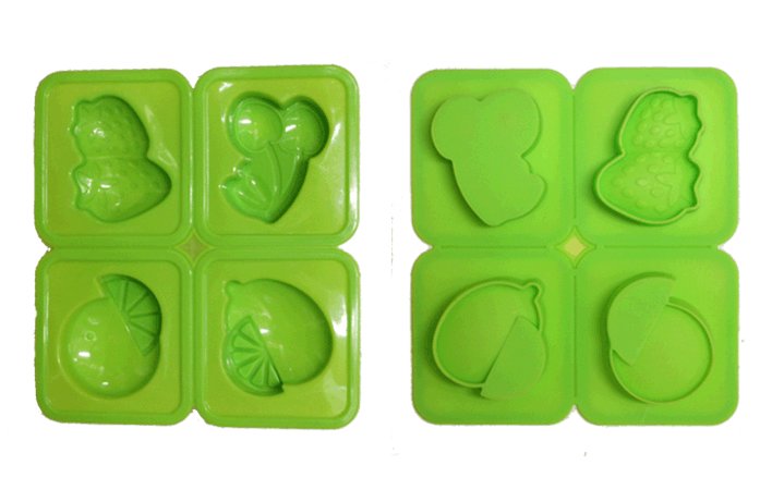 Η φόρμα σιλικόνης με 4 σχέδια φρούτων (φράουλα, κεράσι, πορτοκάλι, λεμόνι) μπορεί να χρησιμοποιηθεί για την παρασκευή εντυπωσιακών παγωτών, ζελέ, κέικ ή ταρτών, αλλά και για σαπούνια και κεριά με "ξεχωριστό" σχήμα. Όταν χρησιμοποιείται για την παρασκευή σαπουνιών (με χρήση έτοιμης βάσης σαπουνιού), το βάρος και οι διαστάσεις (Μ x Π x B) κάθε "μπάρας" είναι αντίστοιχα: