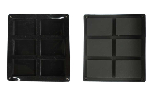 Η φόρμα “6 παραλληλόγραμμα” μπορεί να χρησιμοποιηθεί για να παρασκευάσετε σοκολάτες, τάρτες, μπισκότα, ατομικά γλυκά, αλλά και για σαπούνια και κεριά με "ξεχωριστό" ύφος.