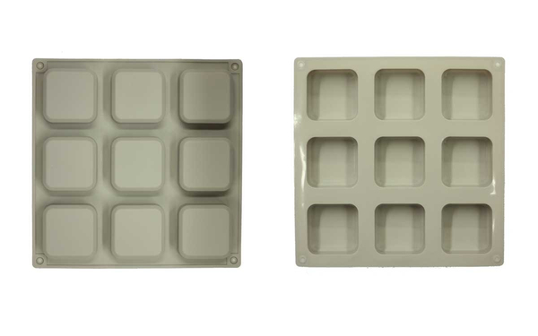 Η φόρμα σιλικόνης “9 Τετράγωνα” μπορεί να χρησιμοποιηθεί για την παρασκευή ατομικών κέικ, μπισκότων, αλλά και για σαπούνια και κεριά με "κλασσικό" σχήμα. Όταν χρησιμοποιείται για την παρασκευή σαπουνιών (με χρήση έτοιμης βάσης σαπουνιού), το βάρος κάθε "μπάρας" είναι περίπου 70gr.