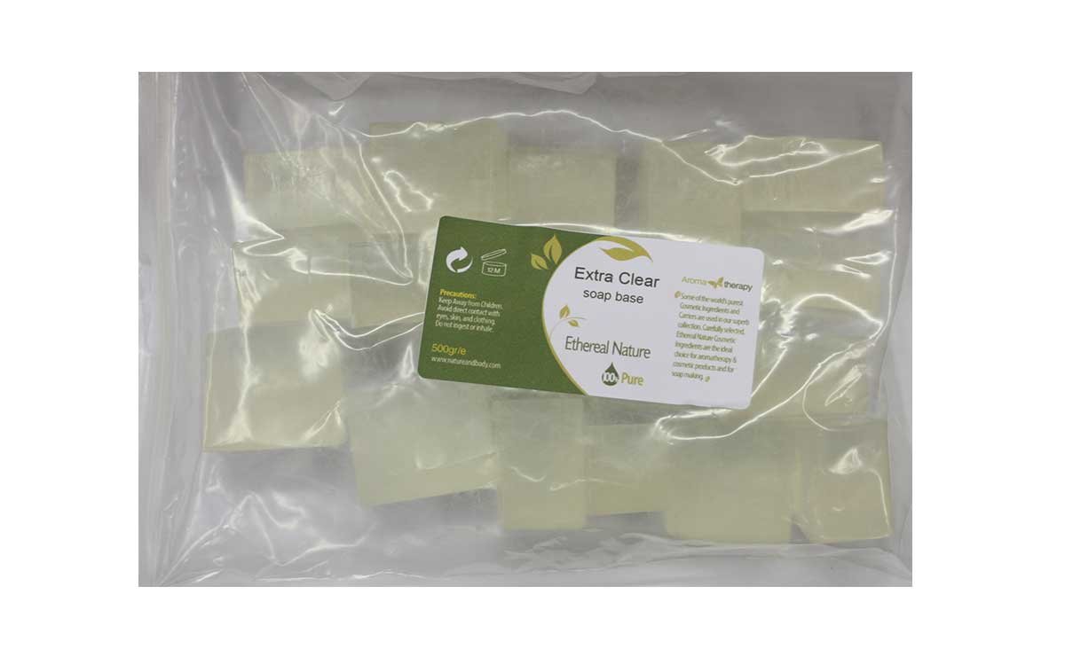 Η Extra Clear βάση που σας προσφέρουμε είναι 100% φυτικής προέλευσης, είναι εξαιρετικά διαφανής στην εμφάνιση και βρίσκεται σε στερεή μορφή. Έχει χαρακτηριστικό άρωμα, "χαμηλής" έντασης και μπορεί πολύ εύκολα να "επεξεργαστεί", προσφέροντάς σας μεγάλη γκάμα δυνατοτήτων. "Λειώνει" στους 60 έως 65 °C (melting point) και κατά τη διάρκεια της επεξεργασίας δεν προκύπτει αφρός. Δεν περιέχει αλκοόλ και paraben, ενώ διαθέτει όλα τα "κλασσικά" συστατικά μίας premium διαφανούς βάσης δηλαδή Glycerin 15-25%, Sodium Stearate 10-20%, Aqua 10-20%, Propylene Glycol 10-20%,