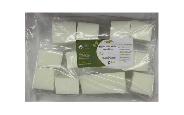 Η Natural Ultra White βάση που σας προσφέρουμε είναι 100% φυτικής προέλευσης και για την δημιουργία της έχουν χρησιμοποιηθεί πιστοποιημένα φυσικά συστατικά. Έχει έντονα γαλακτώδη εμφάνιση και βρίσκεται σε στερεή μορφή. Είναι σχεδόν άοσμη, αποπνέει ένα ιδιαίτερα "χαμηλής" έντασης άρωμα - και μπορεί πολύ εύκολα να "επεξεργαστεί", προσφέροντάς σας μεγάλη γκάμα δυνατοτήτων. "Είναι εξαιρετικά ήπια και απαλή. Λειώνει στους 65 έως 70 °C (melting point) και κατά τη διάρκεια της επεξεργασίας προκύπτει ιδιαίτερα χαμηλός σχηματισμός αφρού. Δεν περιέχει συντηρητικά, πετροχημικά και θεϊκές ενώσεις. Είναι PEG, MPG (monopropyleneglycol) και propyleneglycol free. Δημιουργία της δεν έχουν γίνει δοκιμές σε ζώα. Περιέχει τα "κλασσικά" συστατικά μίας premium φυσικής βάσης δηλαδή Glycerin 20-40%, Aqua 10-20%, Sodium Stearate 5-15%, Sodium Palmitate 5-15%, Alkyl Polyglucosides 5-15%, Sodium Laurate 5-15%, Sucrose 5-10%, Glycol 1-10%, Coco Betaine 1-10%, Sodium Chloride 1-5%, EDTA <1%