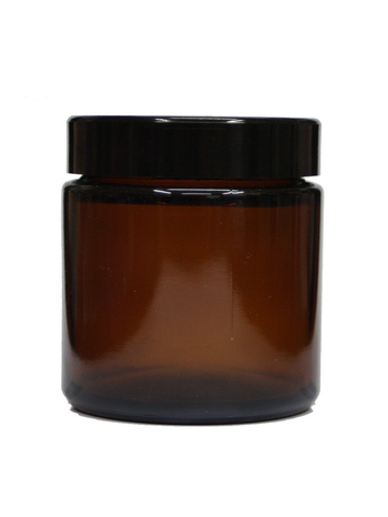 Καραμελέ γυάλινο βαζάκι 100μλ που κλείνει με μαύρο πώμα από βακελίτη.