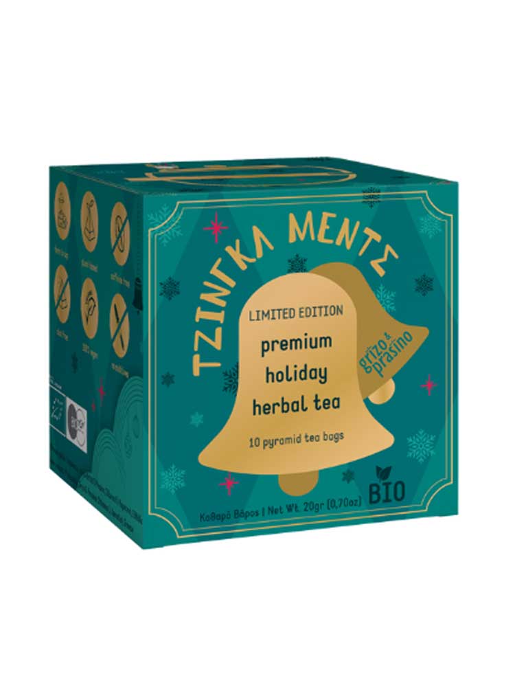 Χειροποίητο Βιολογικό Βοτανικό Μίγμα Τζινγκλ Μεντς με φύλλα μέντας, cacao nibs, λευκό και ροζ πιπέρι, κομμάτια από πορτοκάλι, γαρύφαλλο, κάρδαμο και πέταλα αλθαίας. Ένας μοναδικός συνδυασμός αρωματικών βοτάνων και προσεγμένων μπαχαρικών, τα οποία προσδίδουν στο μίγμα ένα ιδιαίτερο, χριστουγεννιάτικο άρωμα που κλέβει τις εντυπώσεις. Μια ξεχωριστή εμπειρία γεύσης με βαθύ άρωμα, πλούσιο χαρακτήρα και άριστη ποιότητα που δημιουργεί μια ανεπανάληπτη αίσθηση ζεστασιάς και φροντίδας.