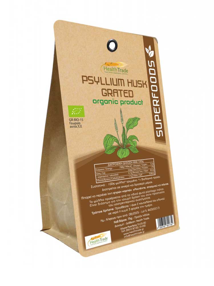 Το Psyllium Husk της εταιρίας HEALTH TRADE θεωρείται σημαντική υπέρ-τροφή, πλούσια σε θρεπτικά συστατικά. Λόγω της υψηλής σε φυτικές ίνες σύστασής του, έχει την ιδιότητα να κατακρατά νερό σε ποσοστό 1/6 του βάρους του και να το απορροφά στο έντερο βοηθώντας στην προώθηση της φυσιολογικής λειτουργίας του, χωρίς να προκαλείται αύξηση του μετεωρισμού. Επιπλέον, διατηρεί το περιεχόμενο του εντέρου μαλακό, με αποτέλεσμα την ταχεία και χωρίς πόνο αφόδευση και την αποφυγή δημιουργίας αιμορροΐδων και ραγάδων στον πρωκτό. Επίσης μπορεί να χρησιμοποιηθεί ως έκτακτη αντιμετώπιση για την ανακούφιση της δυσκοιλιότητας, της διάρροιας ή των συμπτωμάτων του ευερέθιστου εντέρου, ενώ είναι κατάλληλο για χρήση και από άτομα με χρόνια σπαστική κολίτιδα. Μία ακόμη σημαντική του δράση είναι η συμβολή του τόσο στη ρύθμιση της ποσότητας σακχάρου στο αίμα, μέσω της επιβράδυνσης της απορρόφησης υδατανθράκων, όσο και στην προστασία της υγείας της καρδιάς καθώς πλείστες έρευνες έχουν καταδείξει ότι η λήψη ψυλλίου βοηθά τους ανθρώπους να διαχειρίζονται σωστά τα επίπεδα χοληστερόλης τους με αποτέλεσμα την εύρυθμη λειτουργία του οργανισμού. Τέλος, θεωρείται ιδιαίτερα αποτελεσματικό στην απώλεια βάρους, καθώς φαίνεται ότι αυξάνει το αίσθημα πληρότητας και μειώνει την όρεξη.