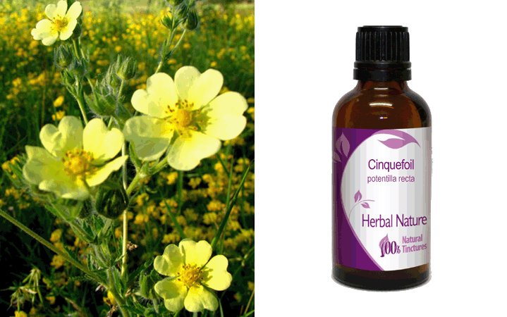 Το βαμμα Ποτεντιλλης (Potentilla recta) περιέχει τα ίδια ενεργά συστατικά με το αποξηραμένο βοτανο Ποτεντιλλη (Πενταφυλλο). Στη σύγχρονη βοτανοθεραπεία,η Ποτεντιλλη θεωρείται ένα από τα καλύτερα στυπτικά βότανα, αποτελεσματικό έναντι των αιμορραγιών και της διάρροιας. Η μεγάλη περιεκτικότητα του βοτάνου σε τανίνες, είναι εκείνη που φαίνεται να ευθύνεται για την ισχυρή στυπτική του δράση. Η Ποτεντιλλη λέγεται πως είναι ιδιαίτερα αποτελεσματική για τη θεραπεία της γαστρεντερίτιδας και της παρεπόμενης διάρροιας. Όταν η Ποτεντίλλη χρησιμοποιείται για γαργάρες, μπορεί να αντιμετωπίσει τη χαλαρότητα των ούλων ή/και να ανακουφίσει τα "πληγιασμένα" και ερεθισμένα ούλα. Όταν χρησιμοποιείται εξωτερικά, η Ποτεντίλλη περιποιείται πληγές και αμυχές της επιδερμίδας (λέγεται πως παρουσιάζει έντονα επουλωτική δράση), ενώ όταν χρησιμοποιείται για πλύση είναι κατάλληλη για την αντιμετώπιση της λευκόρροιας και των αιμορροΐδων.